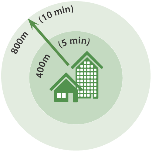 Located on the 3rd and last floor of an old building the apartment offers a surface of 100m2 with 3 bedrooms. In a crowded city probably 4 minutes. The 5-minute walk also known as the pedestrian shed is considered to be the distance people are willing to walk before opting to drive. There s too little information to provide an accurate answer Ill give you an example. The unit of measurement is commonplace in the planning profession and is often represented by a radius measuring ¼ of a mile. In Japan the standard measure for walking distance is 80 meters for 1 minute of walking timeIt is the standard used in real estate listings. Follows paths and roads that allow pedestrian traffic and finds solutions that optimize travel distance. The answer was the pedestrian shed a distance that can be covered in five minutes at a normal walking pacetypically shown on a plan as a circle with a quarter-mile radius. 5 minutes may not seem like much but a 5-minute walk can get you more steps burn more calories and take you farther than you might think.
