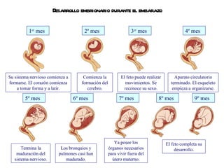 El feto alcanza un peso cercano a. Su intestino empieza a funcionar llenándose de una materia de color verdoso llamado meconio. Cambios en el cuerpo de la madre con el embarazo. O bebê com 1 mês já consegue levantar a cabeça por alguns instantes quando é colocado de bruços. Descargue el vector de stock Proceso de embarazo del 1º al 9º mes. El número de células nerviosas es el mismo que el que tienen los adultos. Etapas de desarrollo fetal. El oído se perfecciona durante este mes y puede distinguir la voz del padre. El desarrollo del feto en el sexto mes de embarazo.
